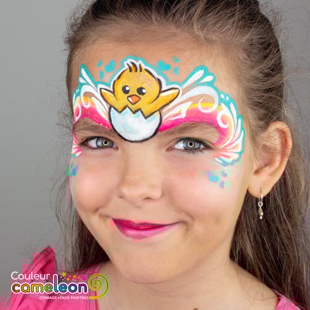 L'incontournable lapin de Pâques et son acolyte le petit poussin. Des maquillages printaniers tels que la coccinelle et des motifs floraux revisités.